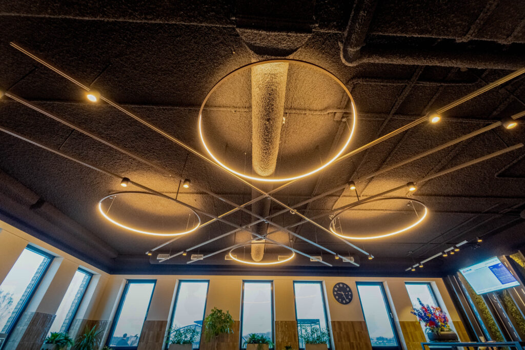 De kantine is volledig gerenoveerd, waarbij het oude plafond en interieur is verwijderd.